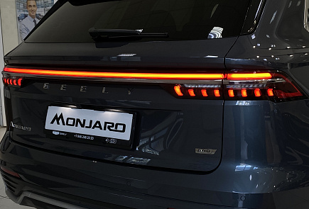 Классический силуэт кроссовера Geely Monjaro олицетворяет уверенность и мощь одновременно. Агрессивная вогнутая решётка радиатора с вертикальными ламелями, оптика оригинального дизайна с двойными горизонтальными ходовыми огнями – запоминающиеся и узнаваемые черты Monjaro.