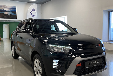 Компактный Tivoli выделяется из автомобилей своего класса. Массивный воздухозаборник с алюминиевыми вставками на переднем бампере, задний спойлер и красные акценты кузова отражают его динамичный характер.